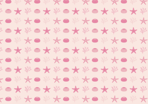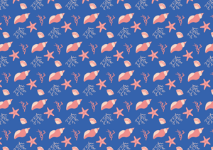 Voglia di mare con questo pattern: coralli, conchiglie e stelle marine su sfondi che ricordano l'oceano.